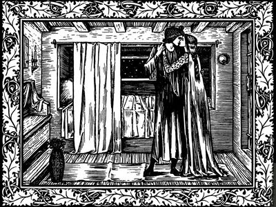 His dates were 1845-1915, his origin Liverpool. He was a member of the Pre-Raphaelite Brotherhood, which sought to recapture the "purity" of late medieval art. Dante Gabriel Rosetti and William Morris were its best-known members, and the movement featured painting and poetry and, most spectacularly for bibliophiles, the Kelmscott Press, which turned out beautifully ornate volumes featuring terrific engravings and illustrations.